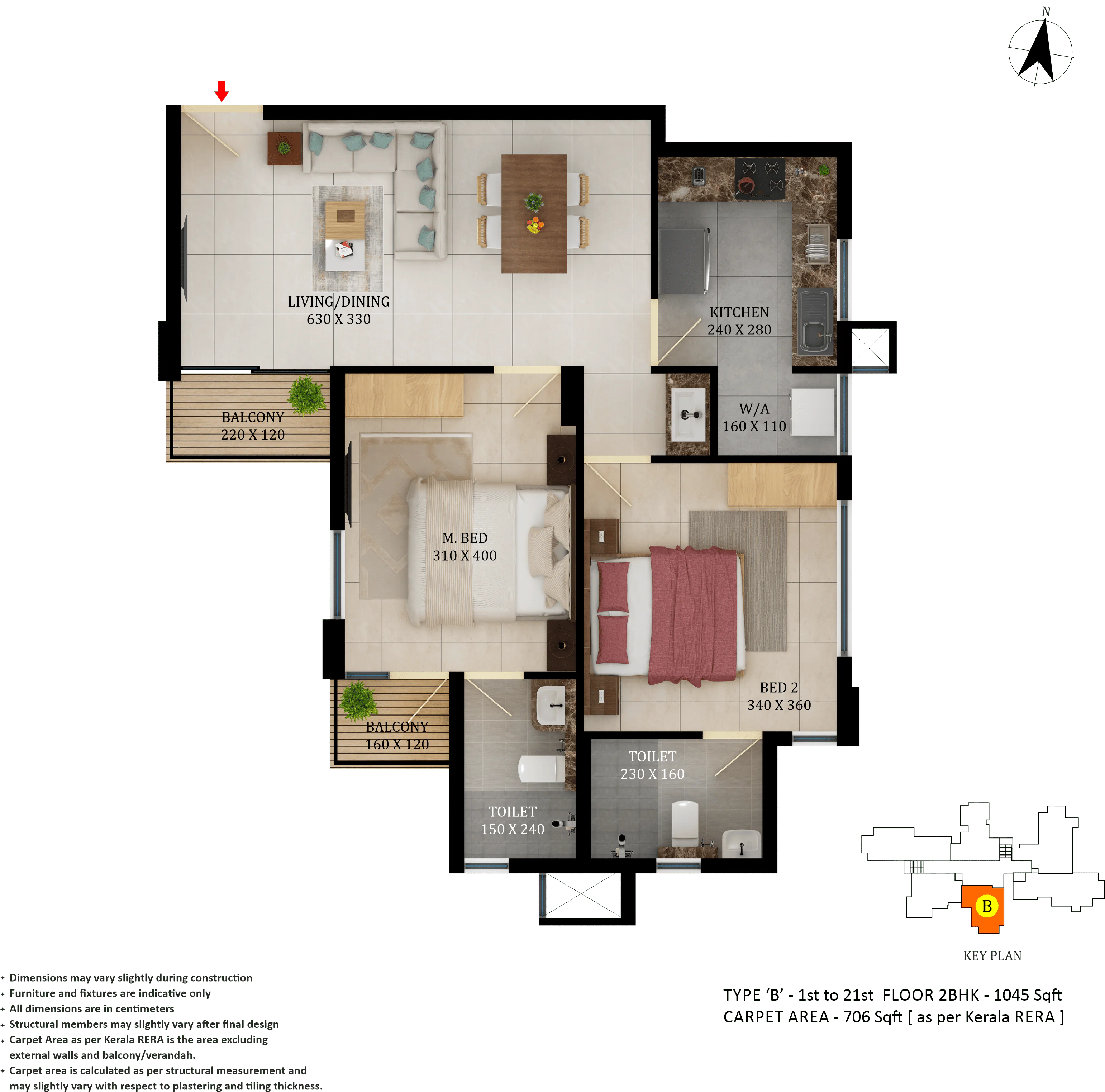 Strategically located in the heart of Karyavattom, this residential complex is close to Trivandrum’s prominent locations: Technopark – Just minutes away, perfect for working professionals. International Airport – A 15-minute drive for hassle-free travel. Educational Institutions– Near prestigious schools and universities like Kerala University and Sree Chitra Institute.